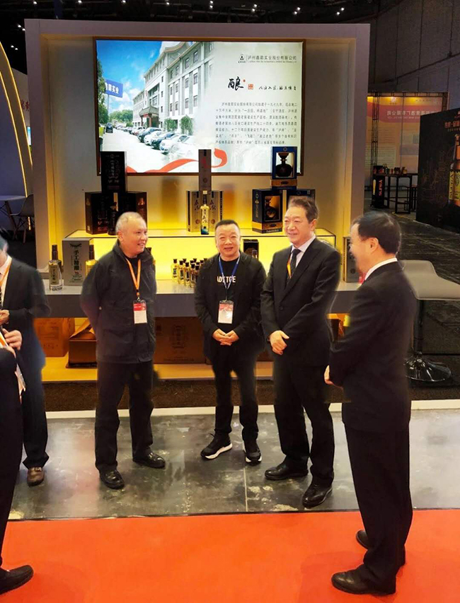 勁牌酒業(yè)股份有限公司董事長(zhǎng)吳少勛(左三)等與公司董事長(zhǎng)魏云飛(右三)在瀘州鑫霸實(shí)業(yè)公司合影